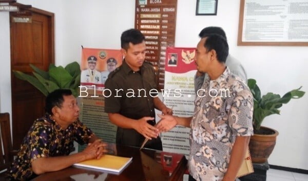 Rokim (Kanan) menyerahkan laporan pengaduan ke Kejari Blora. Foto : Bloranews