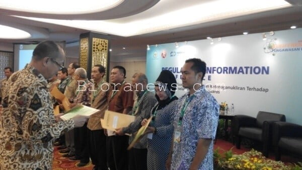 Penyerahan penghargaan tingkat nasional dari Badan Pengawas Tenaga Nuklir (BAPETEN) dalam bentuk BAPETEN Safety and Security Awards (BSA) di bidang radiologi dengan fasilitas Gauging. Foto : Koleksi dr. Jamil Mukhlisin MM.