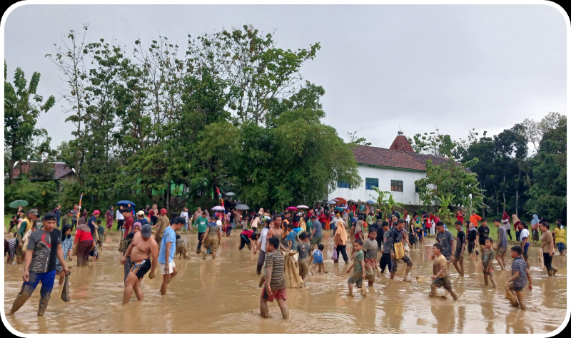 Suasana meriah Festival Tangkap Lele di Desa Karanganyar, Todanan, Blora, yang diikuti ratusan warga dari anak-anak hingga orang tua.