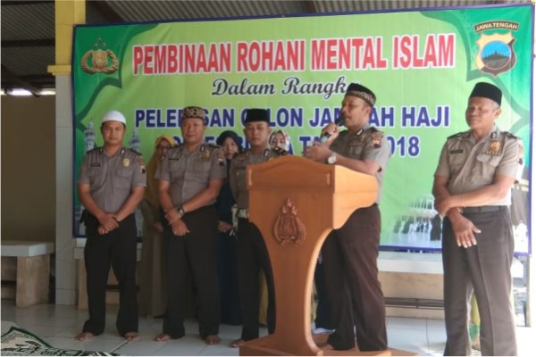Hal ini disampaikan Kapolres Blora AKBP Saptono dalam Pembinaan Rohani Mental Islam dalam rangka Pelepasan calon Haji Polres Blora 2018 di Masjid Al Istiqomah Mapolres Blora, Senin (23/07) pagi tadi.