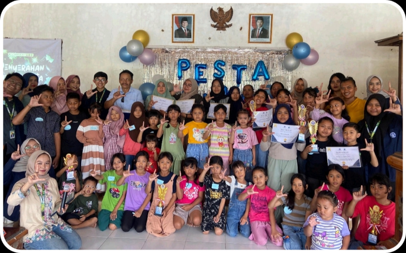 Anak-anak berkumpul dengan semangat mengikuti Pesta Buku, acara penutup dari program Lentera (Literasi Anak Desa Kajengan) yang digagas oleh mahasiswa KKN-T IPB University.