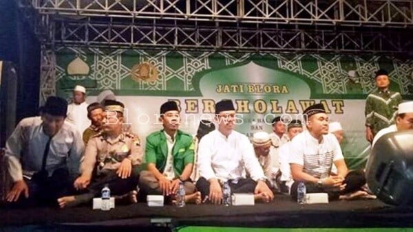 “Mari kita lupakan kegaduhan politik. Hari ini, malam ini, kita pusatkan hati dan pikiran kita kepada Allah dan Rasulullah,” ungkapnya saat memberikan sambutan di sela acara Tabligh Akbar jati bersholawat yang digelar di Lapangan sepak bola desa Jati Blor