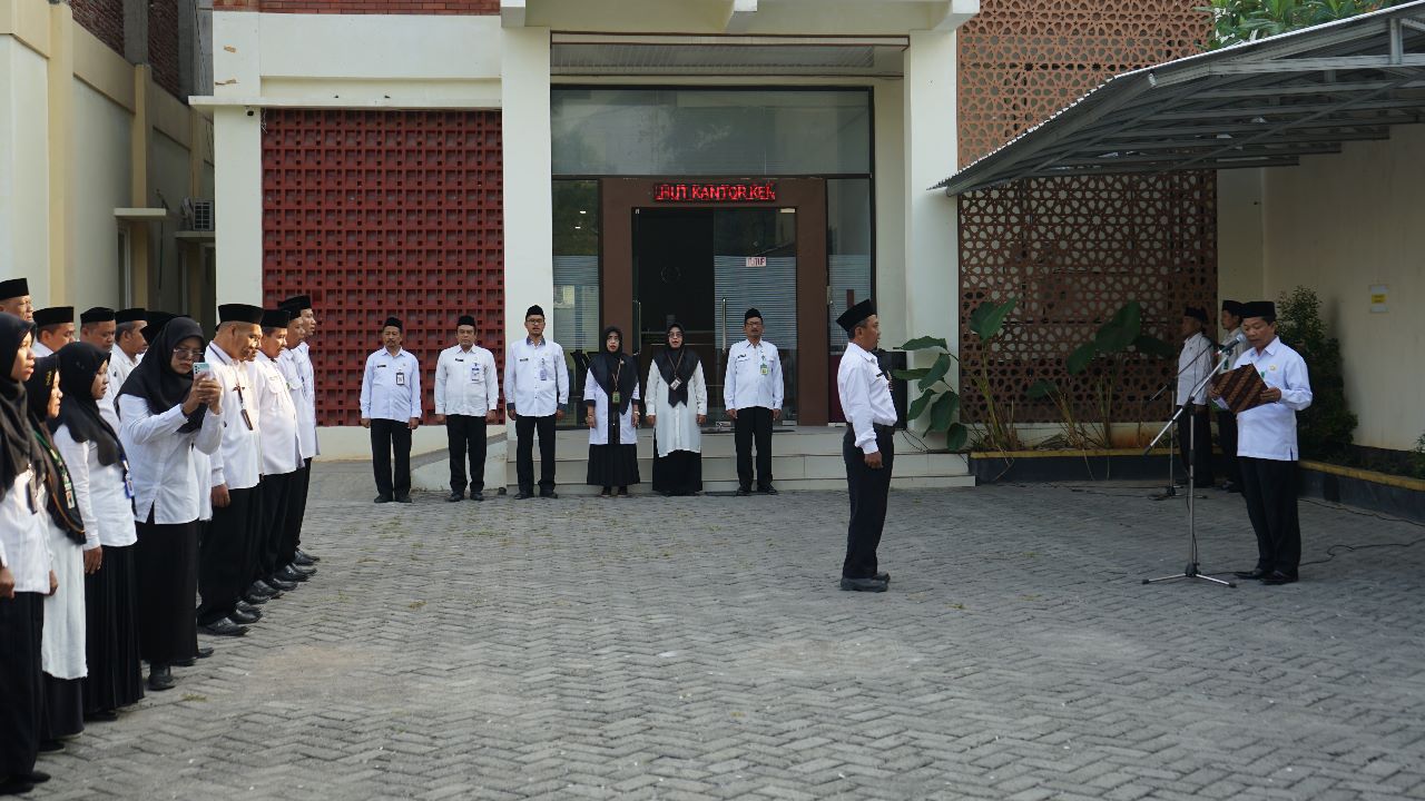 Hal itu disampaikan saat memimpin Upacara Peringatan Hari Lahir Pancasila yang digelar di halaman Gedung PLHUT Kemenag Blora, Kamis (1/6/2023).