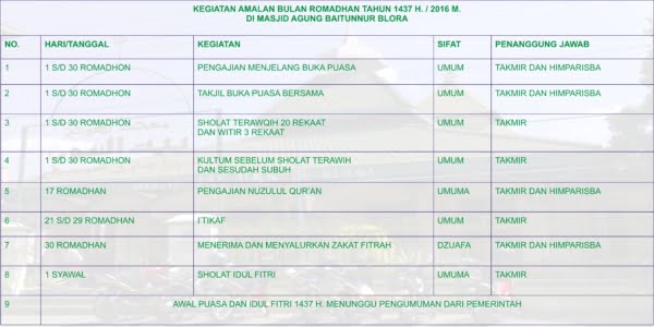 Blora (18.06.2016) Bulan Ramadhan di Blora merupakan salah satu momentum istimewa untuk menyegarkan kembali jiwa masyarakat Blora. Masjid Agung Baitunnur Blora menyajikan berbagai agenda dalam bulan yang penuh berkah ini.
