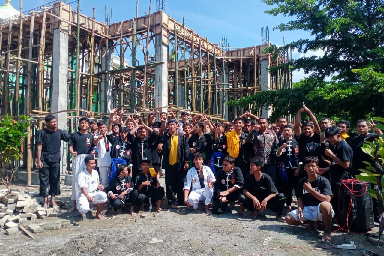 Ratusan pesilat gotong royong bantu pengecoran masjid.
