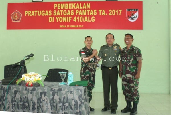 Blora – Pembekalan Satgas Yonif 410/Alugoro, Brigadir Jenderal (Brigjen) Mochamad Haryanto memberikan pengarahan teritorial, Kamis (23/02/2017).